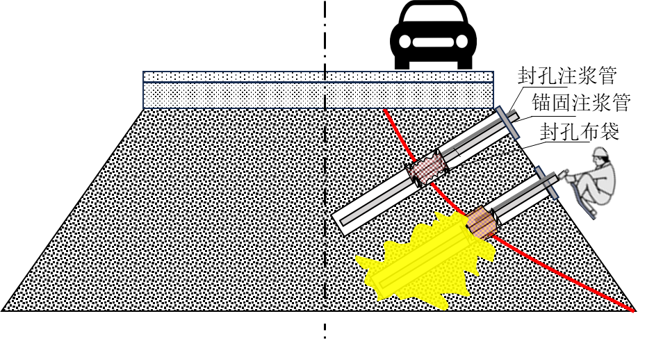 “高聚物錨桿邊坡應急搶險與快速加固技術”主要針對公路土體邊坡失穩險情快速搶險加固和永久修復。此項技術利用中空鉆桿成孔,之后進行注漿封孔,最后使用非水反應高聚物注漿材料進行錨固注漿,非水反應高聚物材料快速反應膨脹、擠密土體,并與周圍土層產生粘結效應,實現土質邊坡即時錨固。該項技術較常規施工方式相比,具有以下優勢特點: