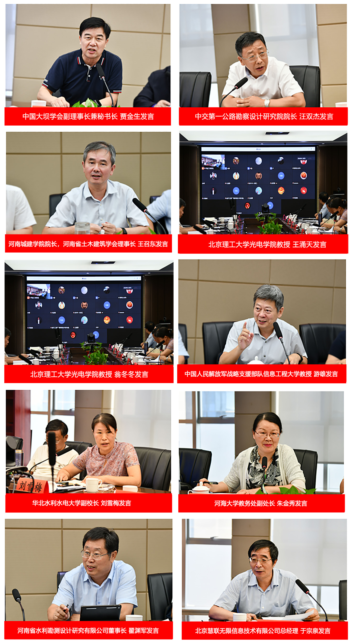 2020年9月1日,壩道工程醫院信息平臺工作推進會在鄭州召開,會議以多地聯動視頻會議模式進行。中國工程院院士王家耀、馬軍,中國大壩工程學會副理事長兼秘書長賈金生,全國工程勘察設計大師、中交第一公路勘察設計研究院院長汪雙杰,河南城建學院院長、河南省土木建筑學會理事長王召東,華北水利水電大學副校長劉雪梅,永煤集團黨委副書記、原河南省文學院常務副院長王保民,北京理工大學光電學院教授王涌天、翁冬冬,中國人民解放軍戰略支援部隊信息工程大學教授游雄,河海大學教務處副處長朱金秀,河南省土木建筑學會副理事長兼秘書長王愛菊,水利教指委秘書處秘書周林,北京慧聯無限信息技術有限公司總經理于宗泉等專家領導出席會議并發言。中國工程院院士、壩道工程醫院院長王復明主持會議并講話。