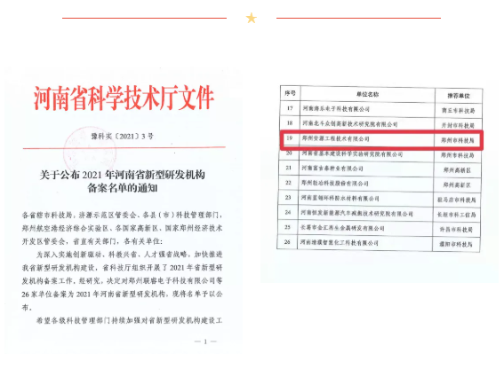 “河南省新型研發機構”系圍繞我省戰略性新興產業集聚發展和傳統產業改造升級的重點領域和技術需求,為提升科技創新能力而開展的申報項目。申報單位需具備業務發展方向明確、具有穩定的研發經費來源、研發基礎條件、穩定的研發隊伍等條件。安源公司10月提交申請材料,11月進行申請答辯,12月通過名單公示,被評選為2021年度河南省新型研發機構。安源公司將持續聚焦產業創新需求及市場需求,落實國家及省委、省政府重大戰略部署,為河南省產業和社會經濟高質量發展作出應有貢獻。