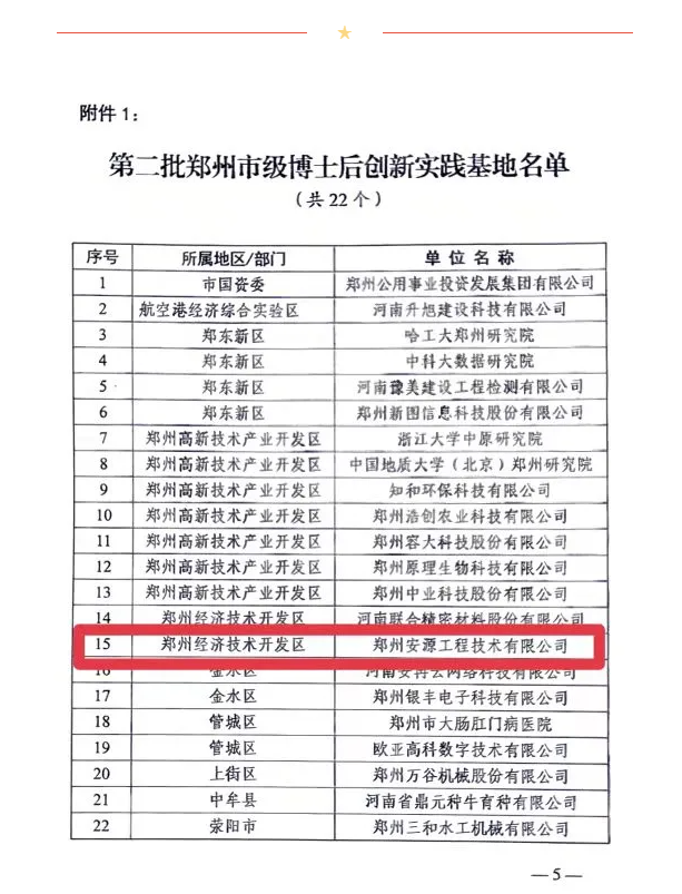 鄭州市博士后創新實踐基地系為進一步完善我市博士后工作體系,充分發揮博士后制度在高層次人才隊伍建設和促進產學研用結合方面的重要作用而設立的人才引進培養工作平臺。安源公司10月申請上報,11月現場考察,12月通過名單公示,入選為鄭州市博士后創新實踐基地。安源公司將充分利用博士后人才技術優勢,促進產學研用結合,加速科技成果轉化,培養高層次創新型青年人才,促進我市經濟社會發展。